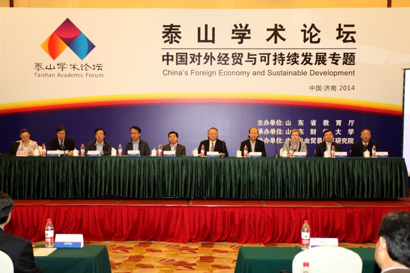 10月24-26日,由山东省教育厅主办、我校承办的“泰山学术论坛—中国对外经贸与可持续发展专题”国际研讨会在山东政协大厦举行。山东省教育厅副厅长宋承祥,中国对外经贸大学副校长林桂军,长江学者、中国APEC研究院院长盛斌,中国社科院财经战略研究院于立新,捷克布拉格经济大学Ludmila,以及来自美国特拉华大学和马歇尔大学、荷兰大学、加拿大达尔豪斯大学和阿卡迪亚大学、韩国中央大学和中国社会科学院、商务部对外贸易经济合作研究院、中国人民大学、南开大学等30所国内外高校和科研机构的专家学者出席开幕式。山东省教育厅为本次论坛发来贺信。党委书记、校长刘兴云出席开幕式并致辞,开幕式由副校长聂培尧主持。