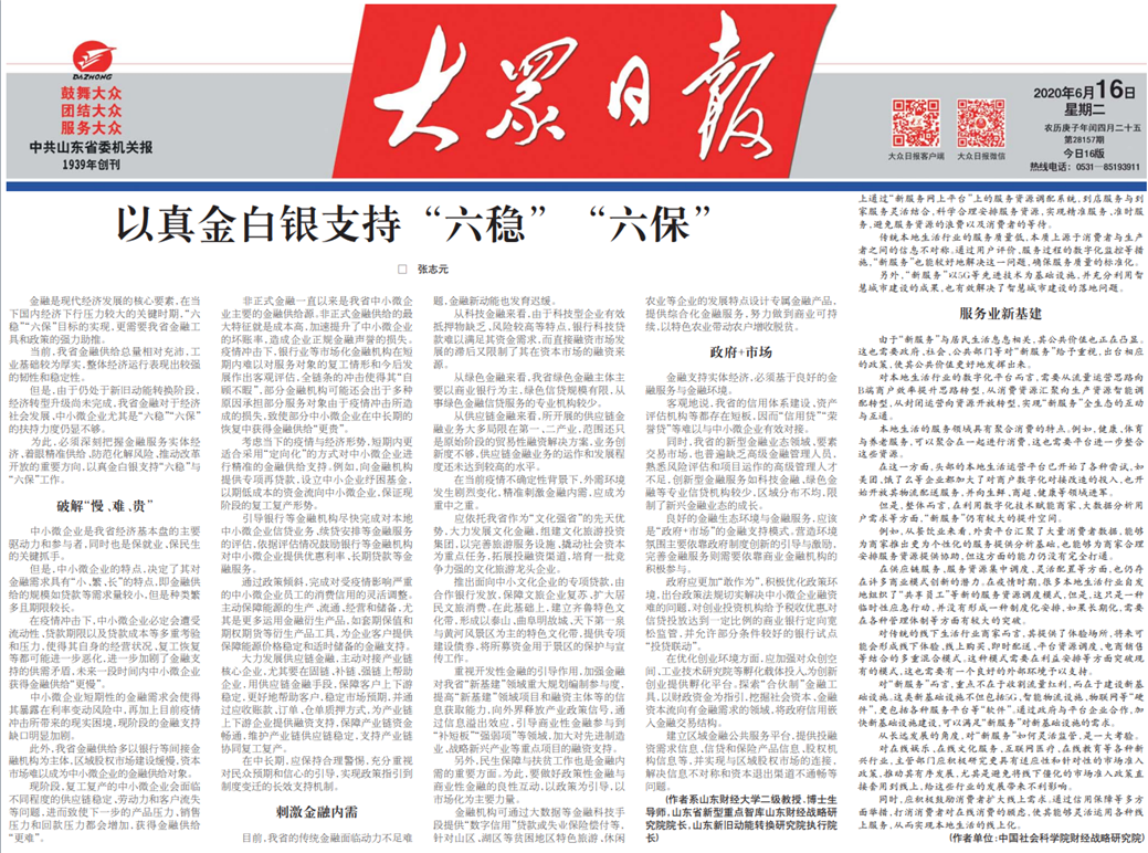 为此,必须深刻把握金融服务实体经济、着眼精准供给、防范化解风险、推动改革开放的重要方向,以真金白银支持“六稳”与“六保”工作。