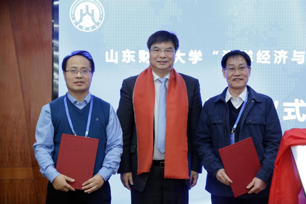 王邵军和李华军为山东财经大学海洋经济与管理研究院揭牌。研究院凝炼了海洋经济数量分析与建模、海洋复杂系统与工程管理、海洋强国战略与政策评估和智能决策与智慧海洋建设四个研究方向,依托在研的两个海洋经济高质量发展国家社科重大项目与重大专项,聚焦于“海洋强国”战略、“一带一路”倡议和“海洋命运共同体”倡议,服务国家重大战略需求和国家“双一流”建设。